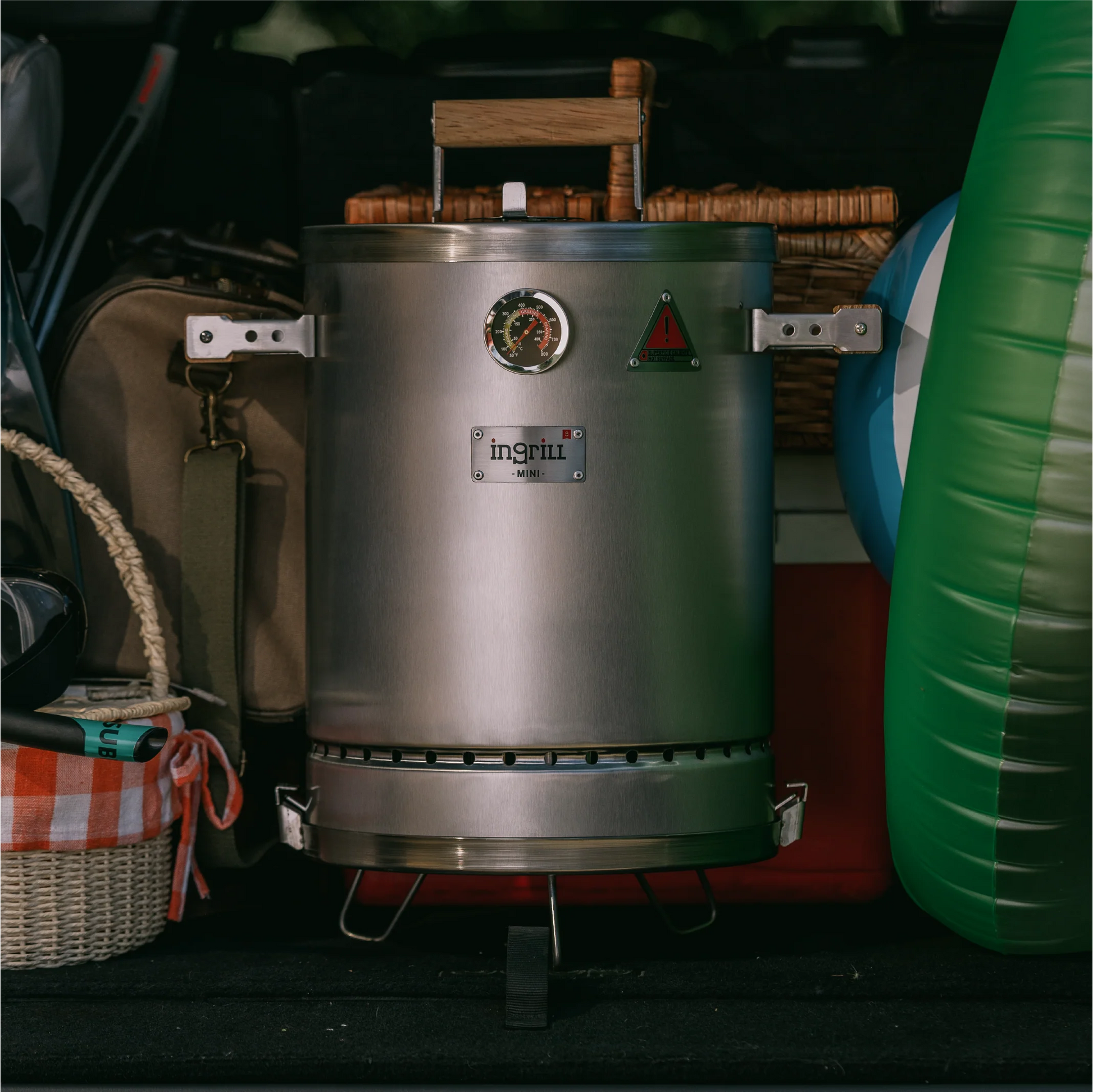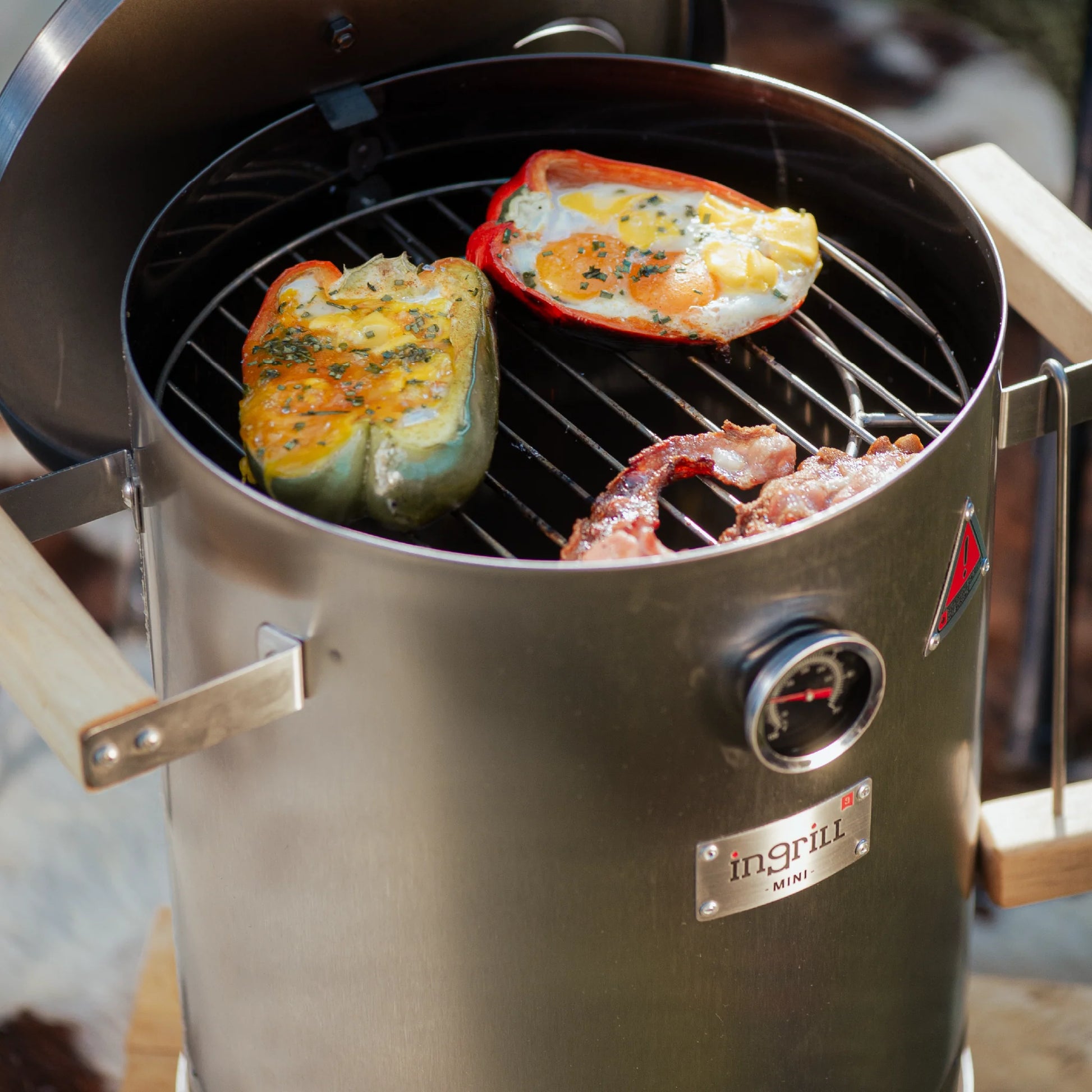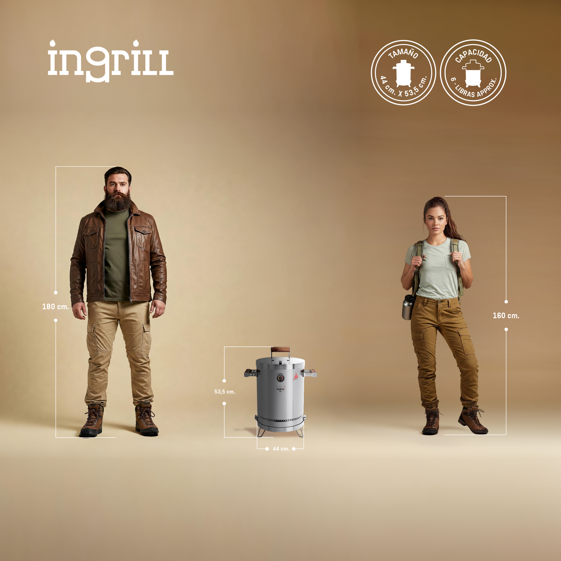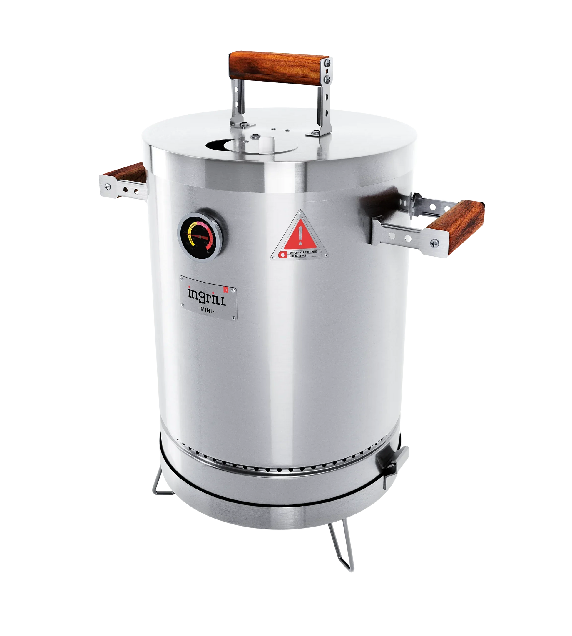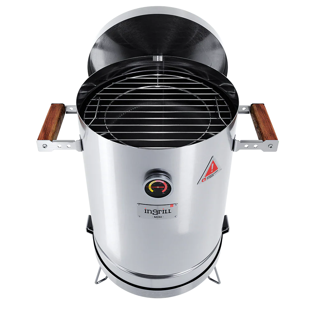 LOS BARRILES ASADORES AHUMADORES INGRILL ESTÁN DISEÑADOS Y FABRICADOS CON ACERO INOXIDABLE Y MADERAS CULTIVADAS, TORNILLERÍA DE ACERO INOXIDABLE, TERMÓMETRO, ESCLUSA DE PASO DE AIRE EN LA TAPA Y SISTEMA EXCLUSIVO DE ANCLAJE DE LA BASE AL CILINDRO.